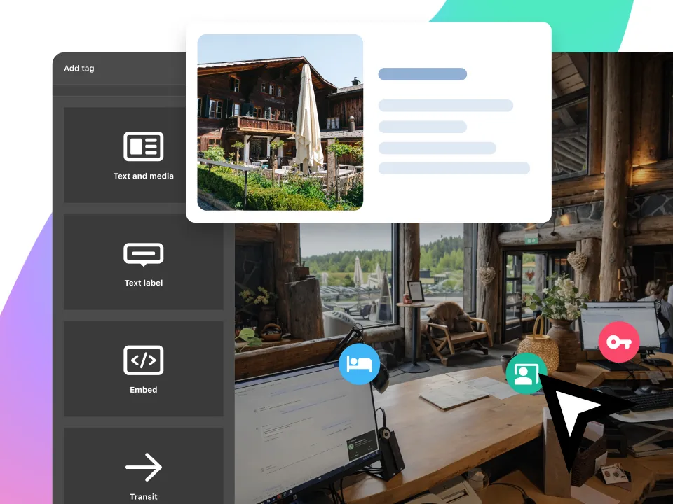 Help new hires feel prepared for the job with immersive onboarding experiences that are quick to build and simple to navigate. Easily embed video, images, audio, and external links to create interactive 360° tours, maps, and visual guides, all without coding. Use them to explain key processes, introduce teams, and provide clear, contextual guidance for a smooth onboarding experience.